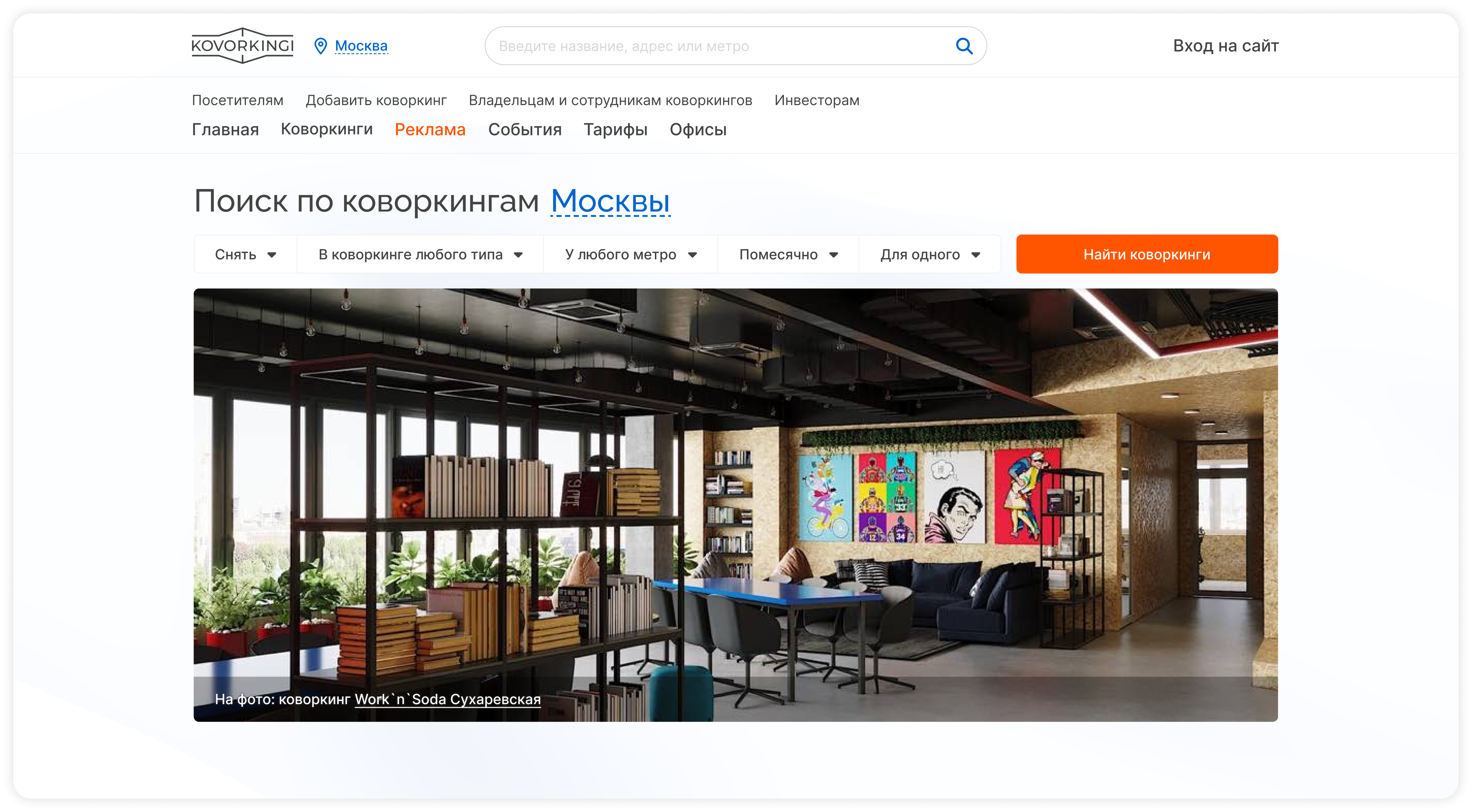Мы сделали редизайн сайта одного из пионеров в области агрегации коворкингов, запущенного в 2012 году.