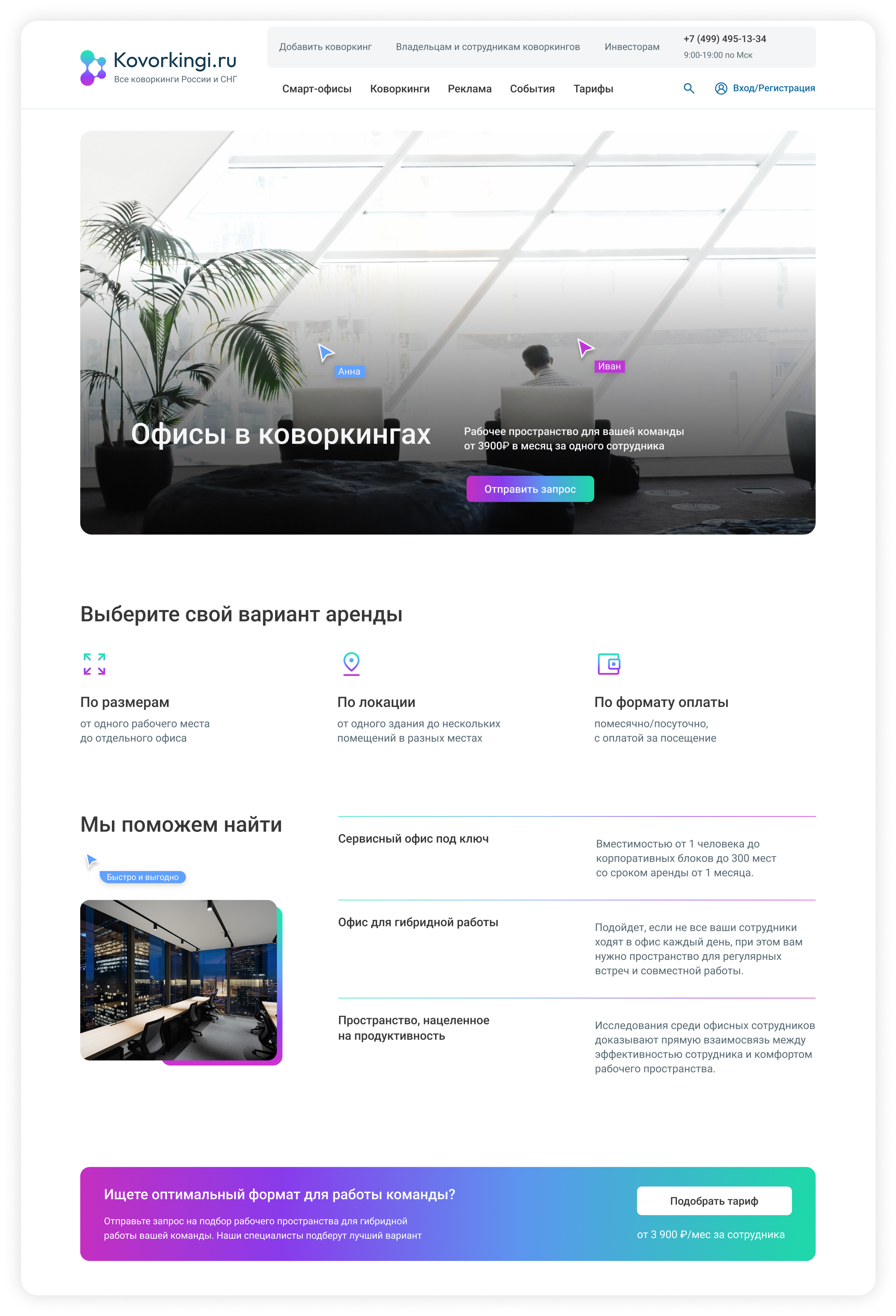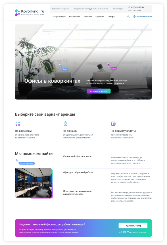 Редизайн крупнейшего в СНГ агрегатора коворкингов