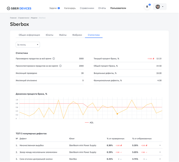 Наглядные графики и метрики демонстрируют динамику качества продукции и упаковки, позволяя оперативно выявлять тенденции и принимать управленческие решения.