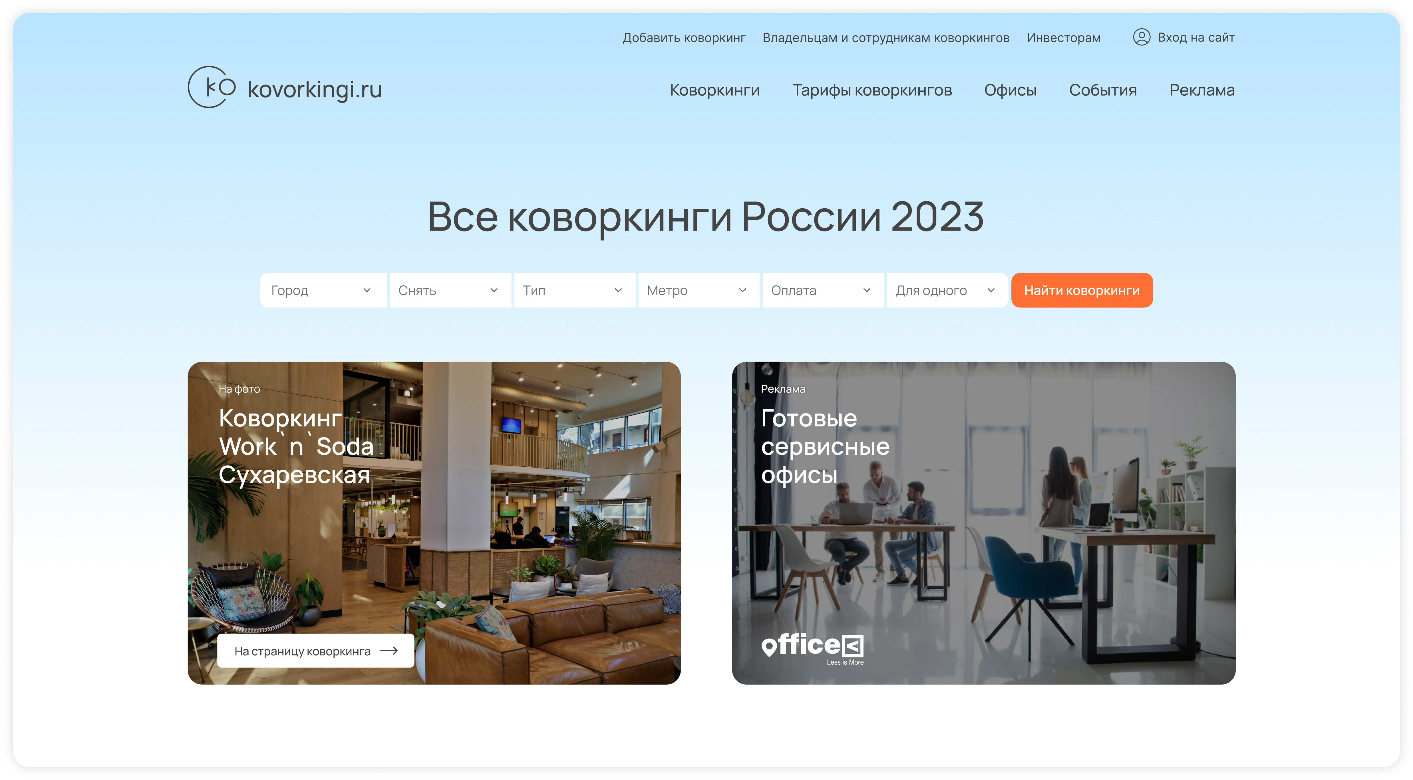 Редизайн крупнейшего в СНГ агрегатора коворкингов