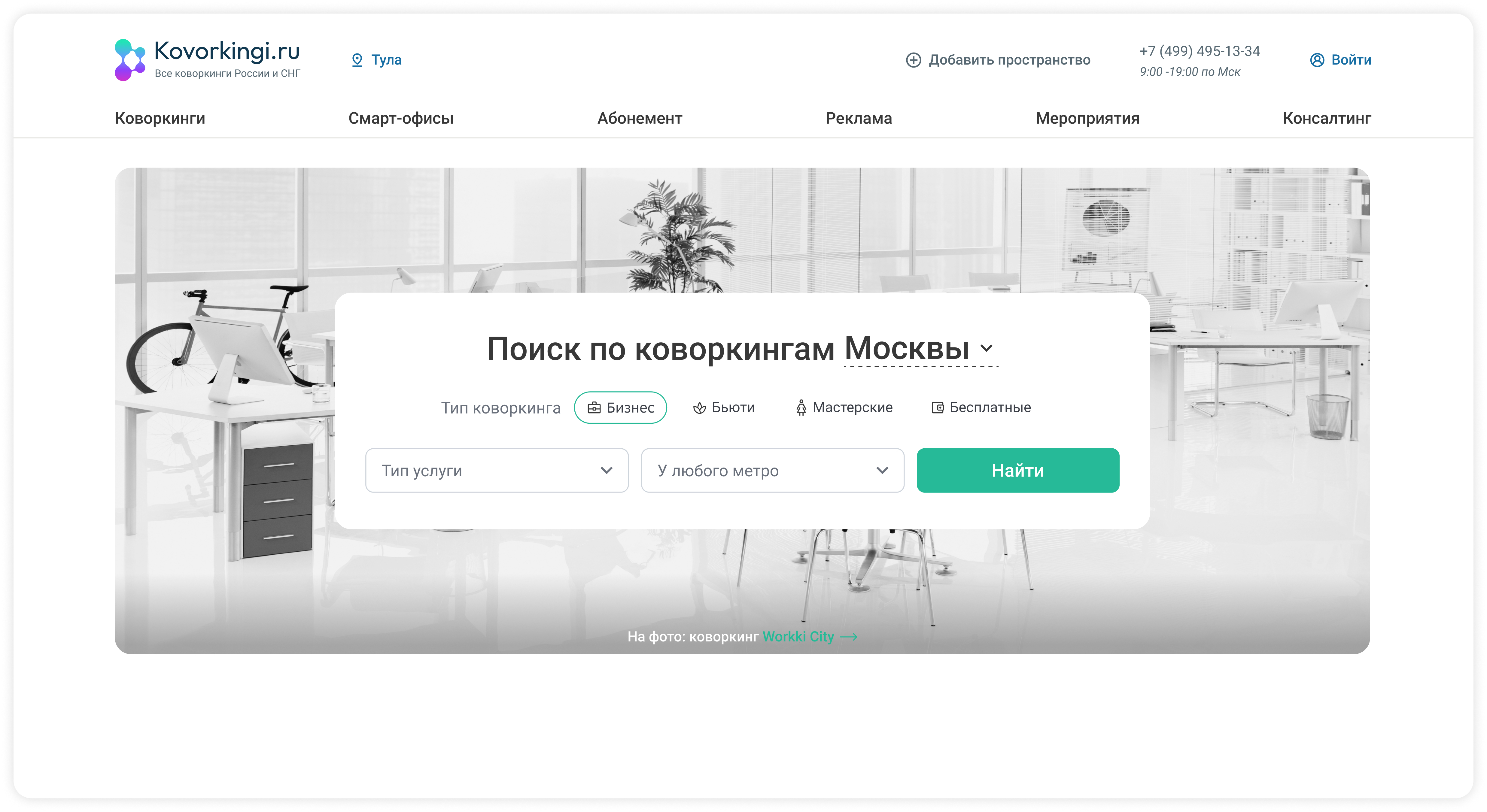 Крупнейший агрегатор коворкинговых пространств в России