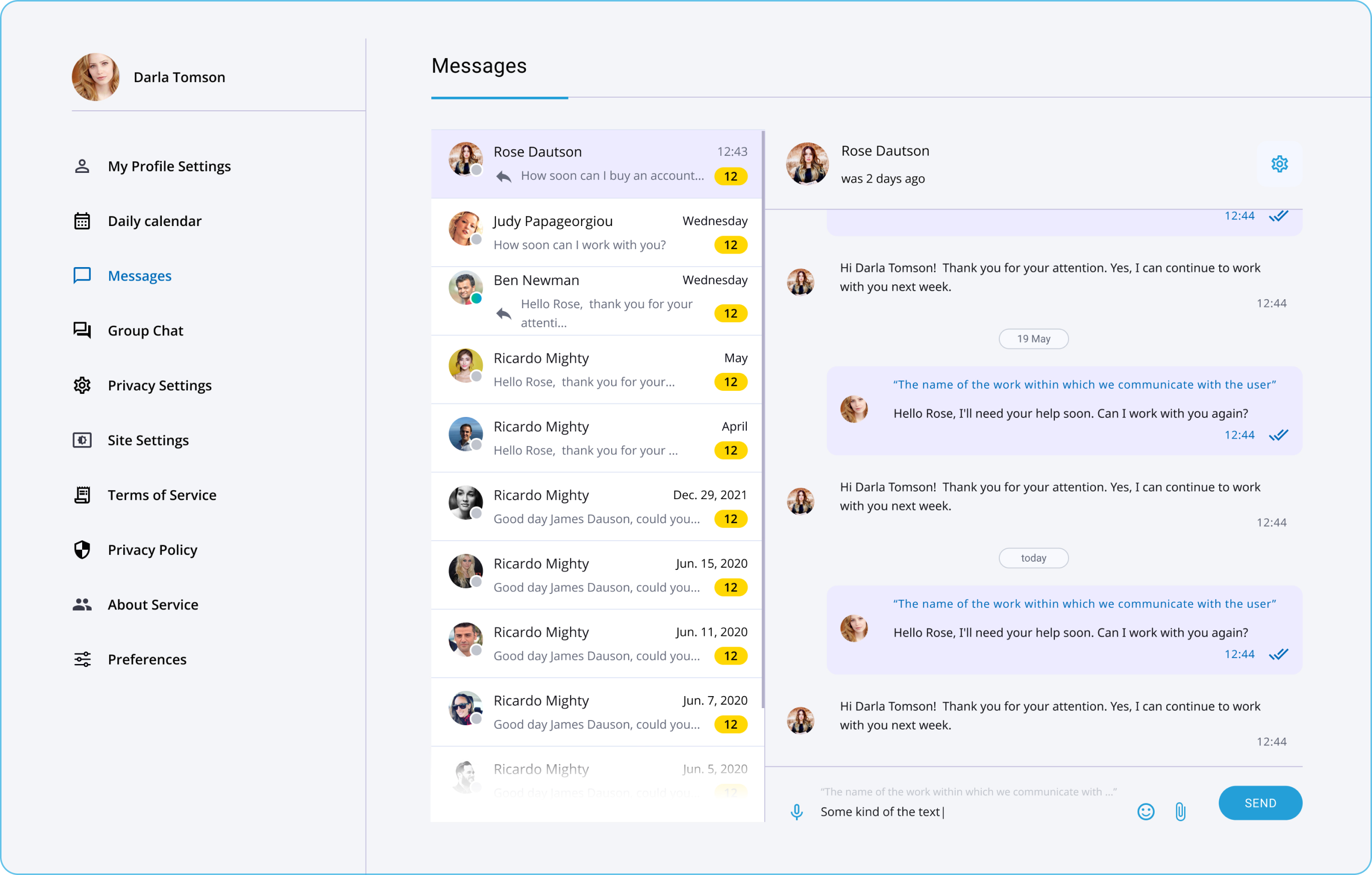 Мы сделали для системы встроенный мессенджер — модальное окно обмена сообщениями с другими пользователями.