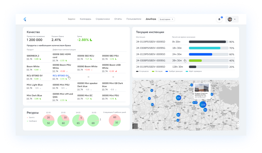 Благодаря аналитике, графикам и метрикам вы видите реальную картину качества, своевременно находите «узкие места» и принимаете меры, экономя ресурсы и усиливая конкурентоспособность.